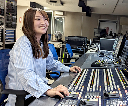 制作技術部で、主にスタジオの運行業務を担当しています。テレビ番組を放送するには、技術だけでもカメラ、スイッチャー、VE、音声など様々な専門業務があります。そのほかにも、制作番組の取材、編集、中継、スポーツ中継など、業務が多岐にわたります。幅広い知識が必要となりますが、先輩方のサポートを受けながらたくさんの現場を経験していきます。